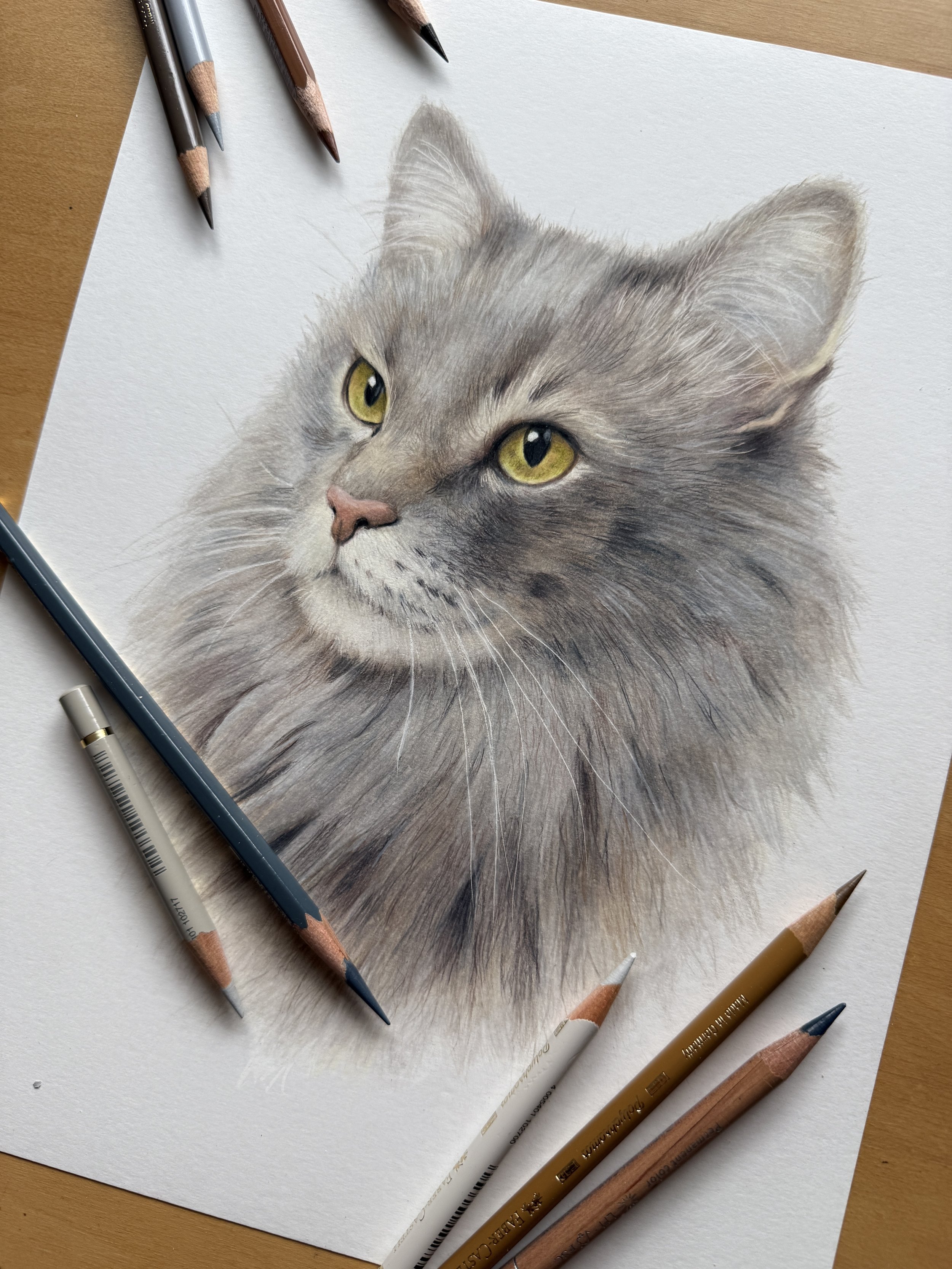 Send clear, well-lit photographs of your pet. I understand that some of your pets are sadly no longer with us, in which case I will do my best to work with the photographs you have. Together we will work on the composition and schedule.
